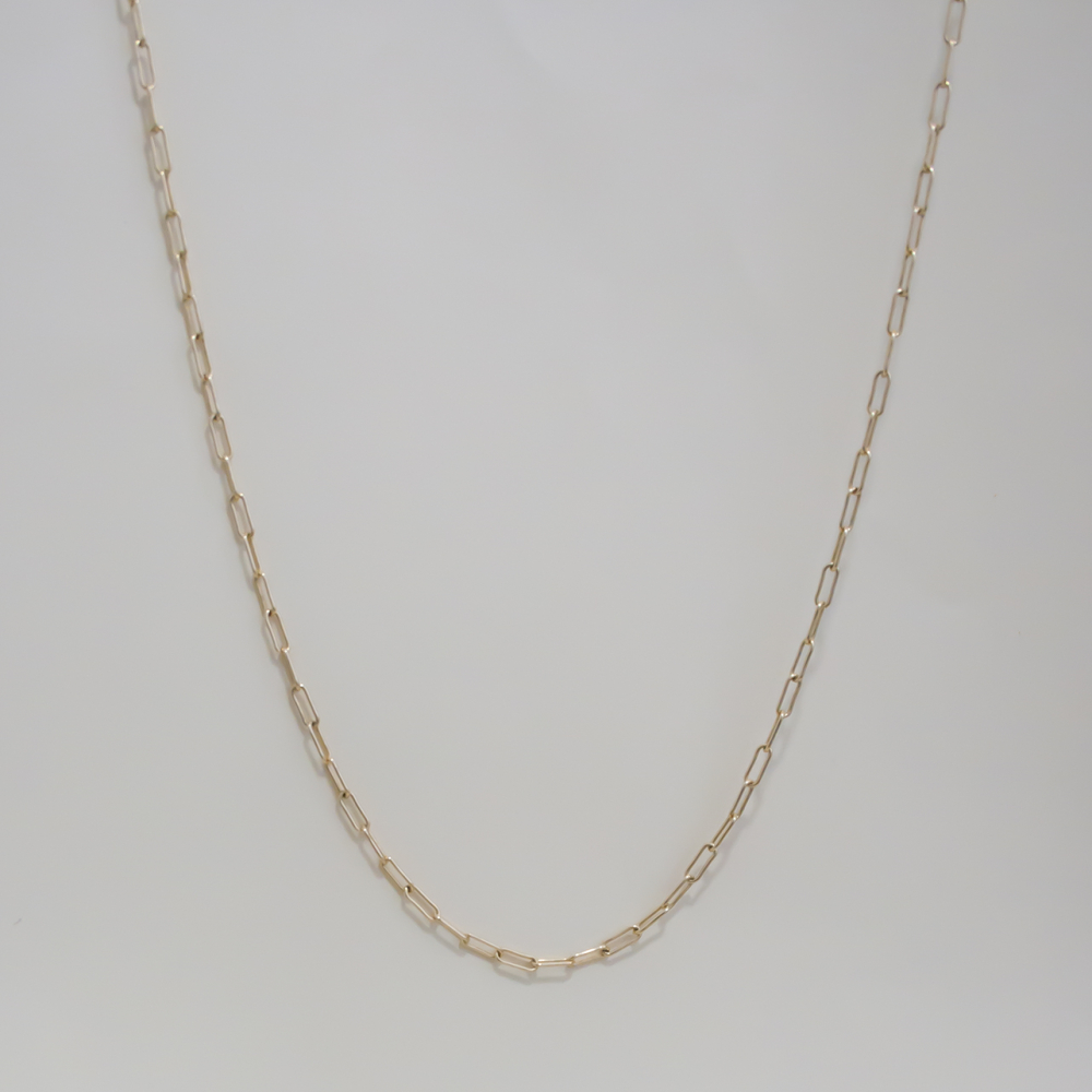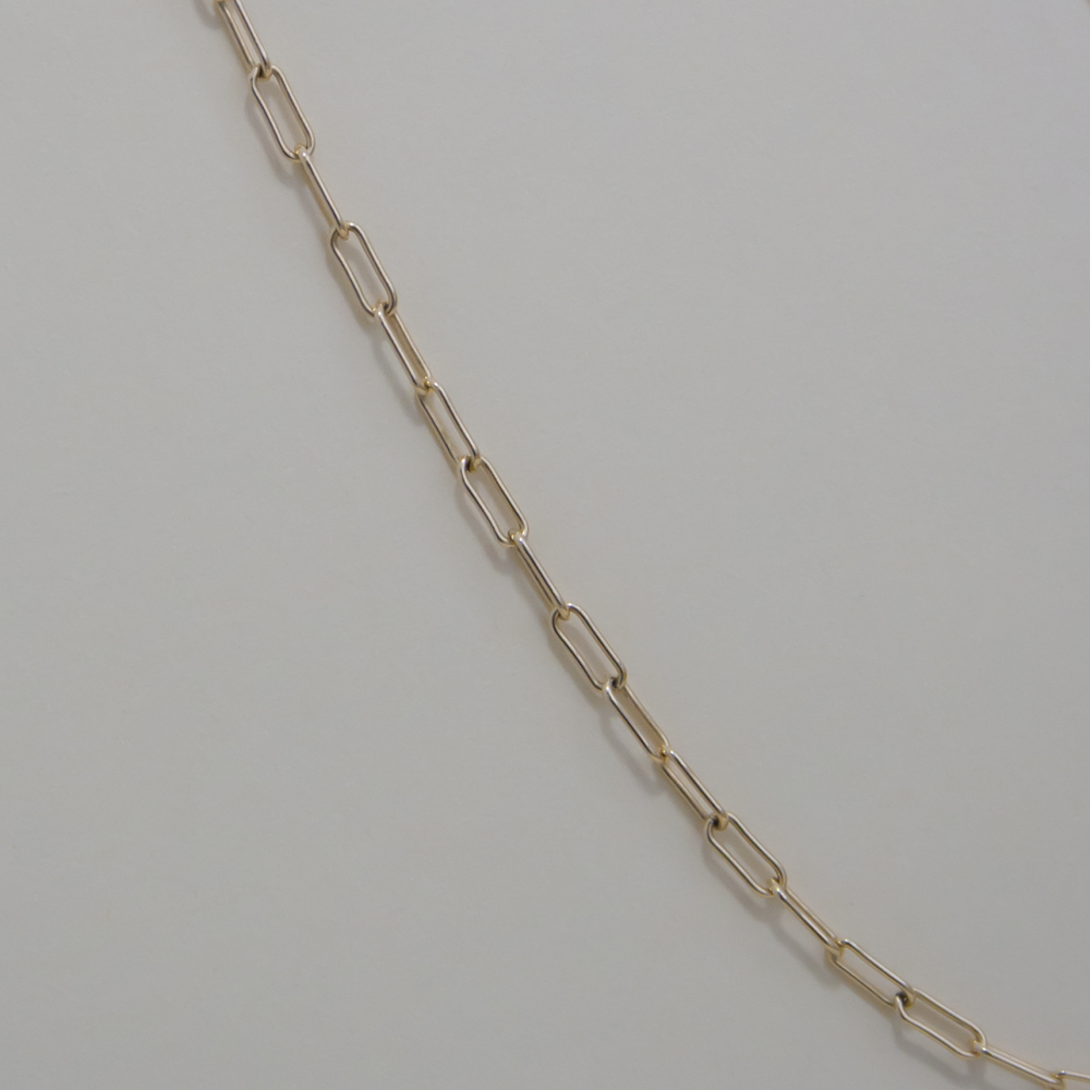 Een subtiele ketting waar je naar wens iets aan kunt hangen, of draag hem met meerdere kettingen op verschillende lengtes. De ketting heeft langwerpige schakels.