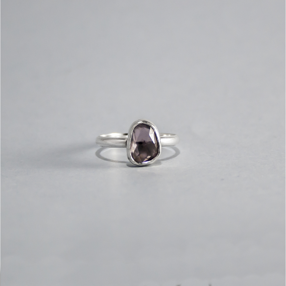 Een sprankelende rosecut spinel in paarse tonen gezet in 925 sterling silver. De ring is gemaakt in maat 15 (let op, dit is pink maat :)).De ring is onderdeel van de one-of-a-kind collectie; ieder stuk is uniek door de free-form geslepen stenen. We hebben een kleine selectie vergelijkbare edelstenen, allemaal anders geslepen. Stuur een berichtje als je een ring in jouw maat wilt ook met zo'n beeldschone toermalijn.
