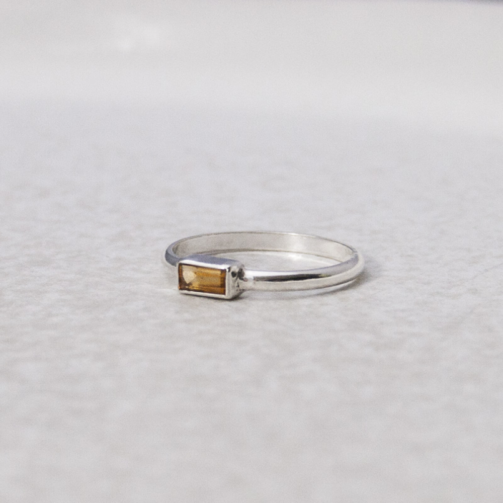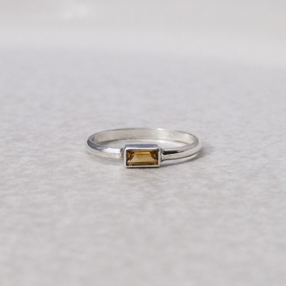 Deze verfijnde ring met een gladde band en een baguette, facetgeslepen geel oranje citrien is onderdeel van de Riviera collectie. Deze ring combineert de tijdloze charme van zilver met de warme kleur van de citrien. Bovendien is deze ring perfect te combineren met een set stacking rings, waardoor je moeiteloos een persoonlijke draai geeft aan je accessoires.