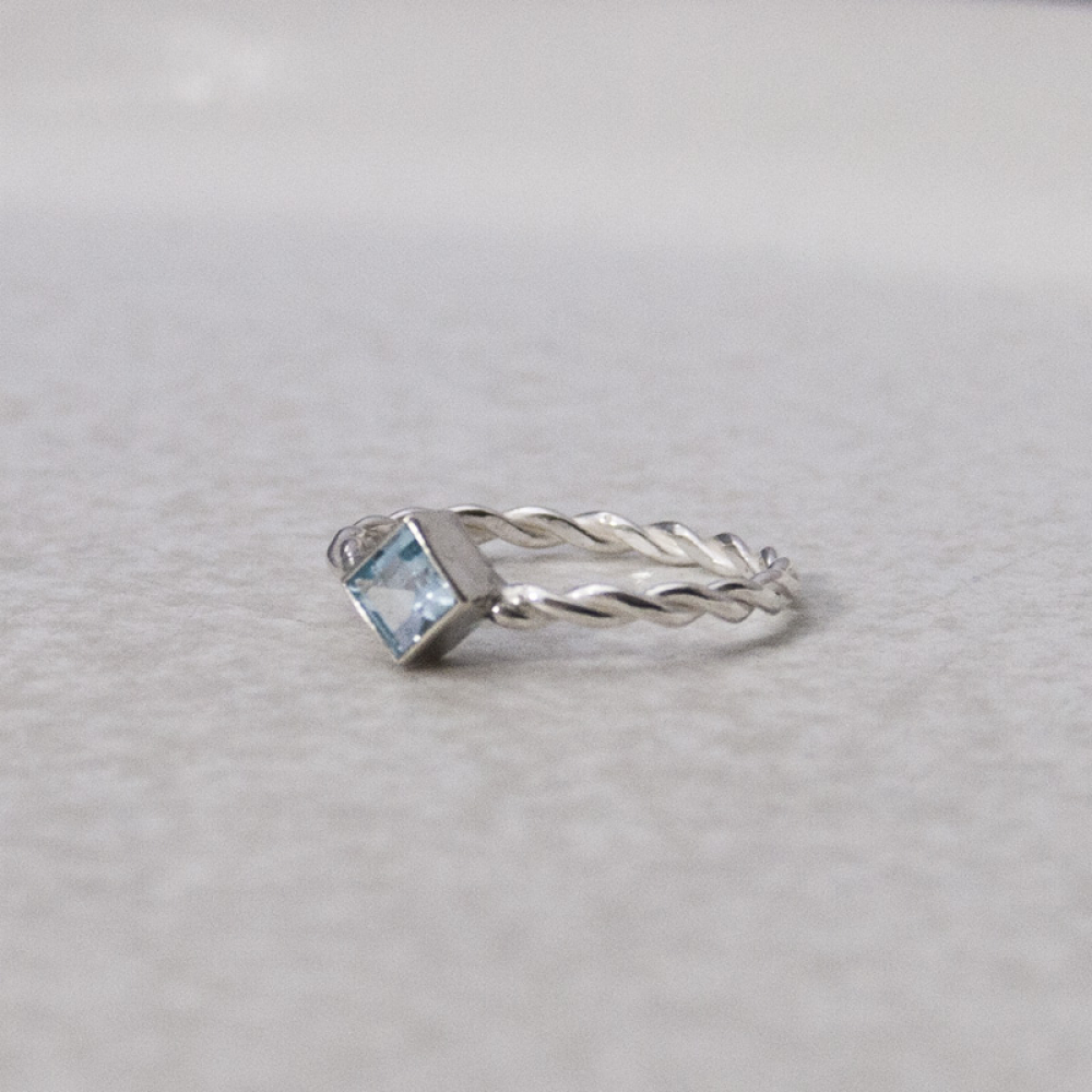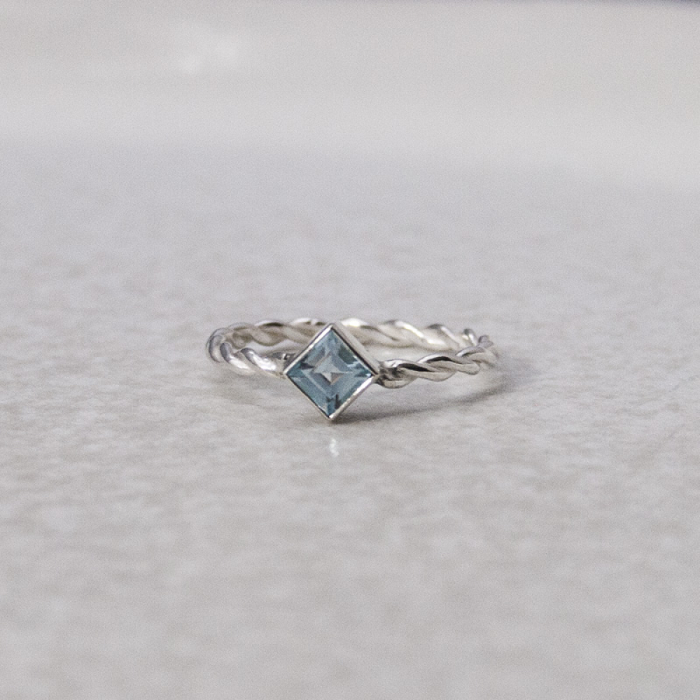 Deze verfijnde ring met een gedraaide band en een vierkante, facetgeslepen blauwe topaas is onderdeel van de Riviera collectie. Deze ring combineert de tijdloze charme van zilver met de sprankelende helderheid van de blauwe topaas. Bovendien is deze ring perfect te combineren met een set stacking rings, waardoor je moeiteloos een persoonlijke draai geeft aan je accessoires.